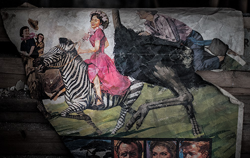 The exhibiting artists were quite sensitive to the beautiful decay inside the Victory. Their work often incorporated the tattered surroundings as if a wand was waved to let something glorious rise from the rubble. The Victory is due for renovation this June. I hope to photograph there with my classes before the reconstruction begins.